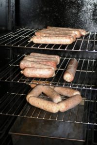 בשישי בערב הדלקתי את המעשנה לטמפרטורה של בערך 90 מעלות, הכנסתי את הנקניקיות, הוספתי צ'אנקים של תפוח והמתנתי עד שטמפרטורת הנקניקיות תגיע לאזור 65-68 מעלות (בערך שעה).