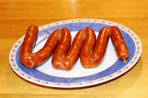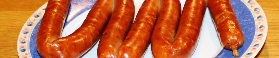 מערבבים יחד את כל המרכיבים, טוחנים יחד וממלאים בשרוול נקניקיות