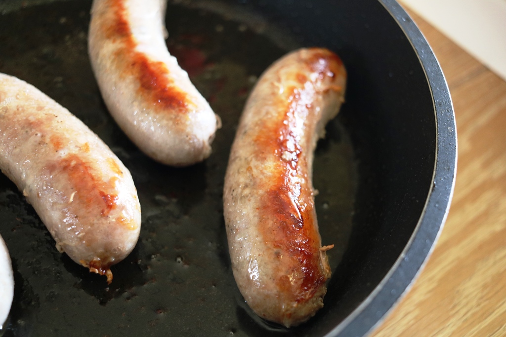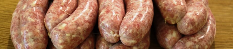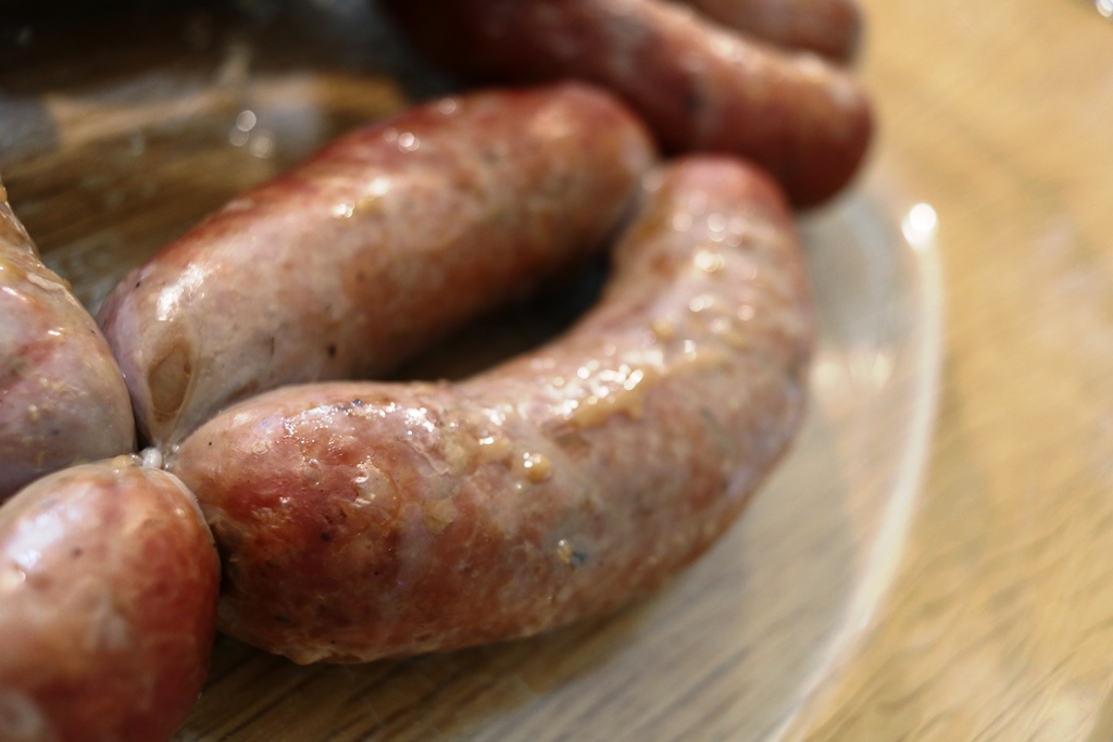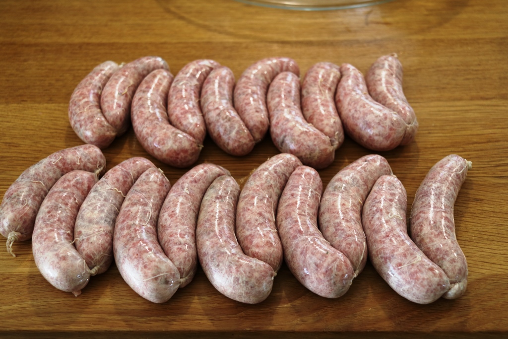 בשבת הכנו מלאי די גדול (12 ק"ג) של Nürnberger Bratwürst וגם של נקניקיות בסגנון איטלקי ועדיין נשארו מעיים. הבקר הקפוא שקנינו עוד לא הספקי להפשיר ולכן חיכינו ליום ראשון.