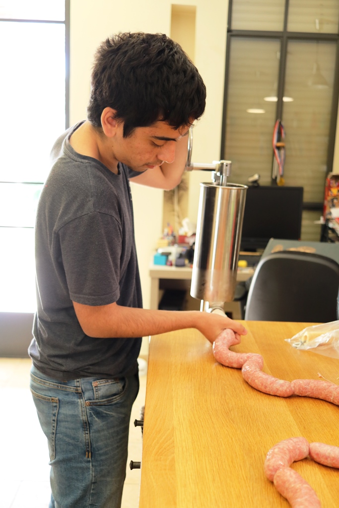 ערמת המעיים נשארה כמעט באותה גודל והבנתי שיש פה בעיה. ניסיתי להזמין חבר או שניים שיגיעו בשבת כדי לייצר ביחד נקניקיות ולהשתמש בכל המעיים, אבל ללא הצלחה. לכן יצאנו בצהרי יום שישי לסיבוב קניית בשר "כמה קילו שולטר אמרת שאתה רוצה?!?!?" כדי להיערך לשבת של הכנת נקניקיות.