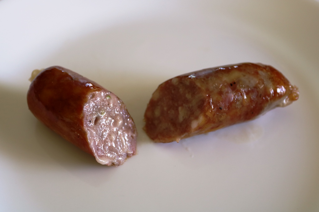 מכינים נקניקיות בקוטר גדול יחסית (נניח 32 מ"מ) ובאורך בינוני לקבלת נקניקיות במשקל 80-85 גרם.