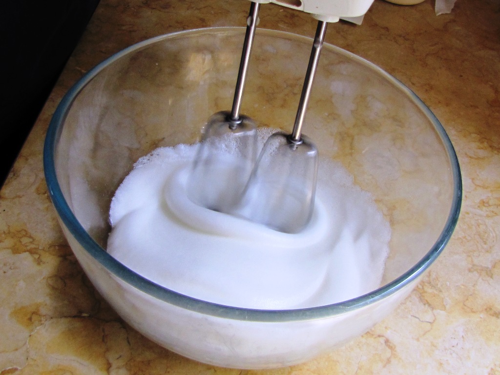 2. להוסיף בהדרגה את הסוכר תוך כדי הקצפה
