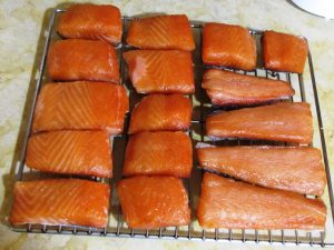 להוציא את חתיכות הדג, לשטוף היטב במים קרים ולייבש. נוכל לראות גם מהצבע וגם מהטקסטורה שהדג התחיל "להתבשל", זו התוצאה של תהליך הכבישה. לאחר התהליך נישאר עם בערך 1.5 ק"ג דג.