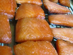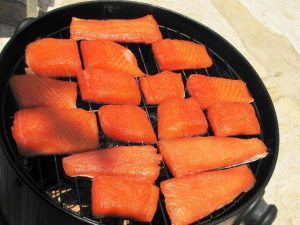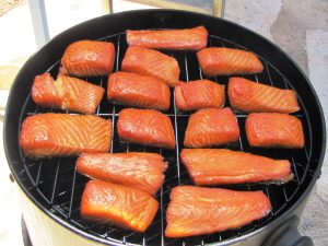 יש להפעיל את המעשנה בטמפרטורה נמוכה יחסית של 75 (כל טמפרטורה בטווח של 65-85 תהיה בסדר). טמפרטורה גבוהה יותר תייבש את הדג יותר מדי ואף עלולה לצלות אותו במקום לעשן אותו (תוכלו להבחין בקרום הלבן – האלבומין, המתקבל כשאופים סלמון בתנור).