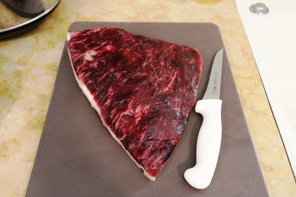 מכיוון שזו הפיקניה הראשונה שייבשתי, פרסתי נתח דק והנחתי לזמן קצר על מחבת רותחת כדי לבדוק האם היא "ראויה" לארוחת הערב.