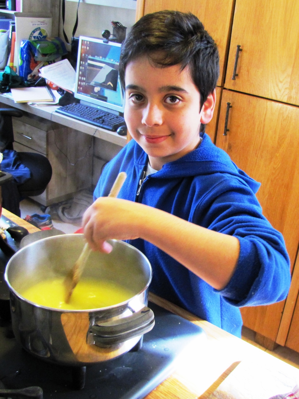 להביא לרתיחה עדינה תוך כדי ערבוב בכף עץ ולבשל למשך דקה עד שמסמיך מאוד.