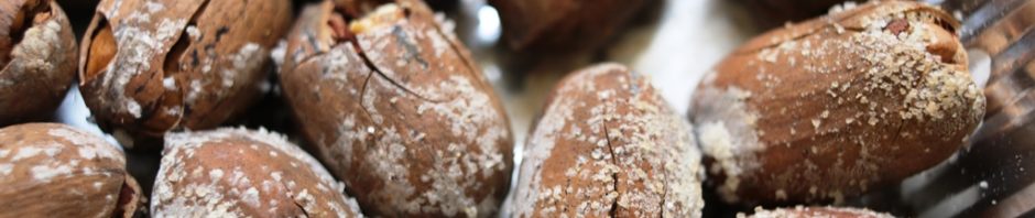 אחד הדברים שאמא שלי הייתה עושה עם שפע הפקאנים הוא לפצח אותם חלקית, לזרות עליהם מים ומלח ולקלות אותם בתנור.