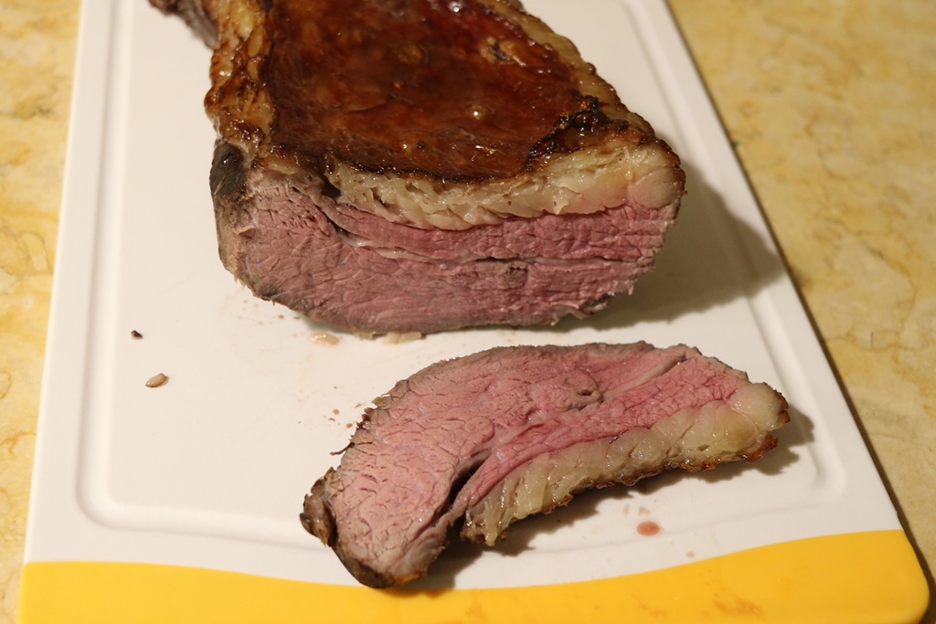 כשהנתח הגיע לסביבות 50 מעלות התנור הועבר למצב גריל למספר דקות לצורך השחמה יפה של השומן.