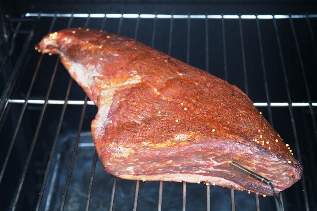 מרחתי מעט קייג'ון כדי שלמעטפת יהיה טעם טיפה שונה והכנסתי למקרר ללילה. למחרת הכנסתי למעשנה על הרשת האמצעית כשהשומן כלפי מטה, עם תבנית מים מתחת ושבבי אלון במגירה הייעודית מעל לגחלים.