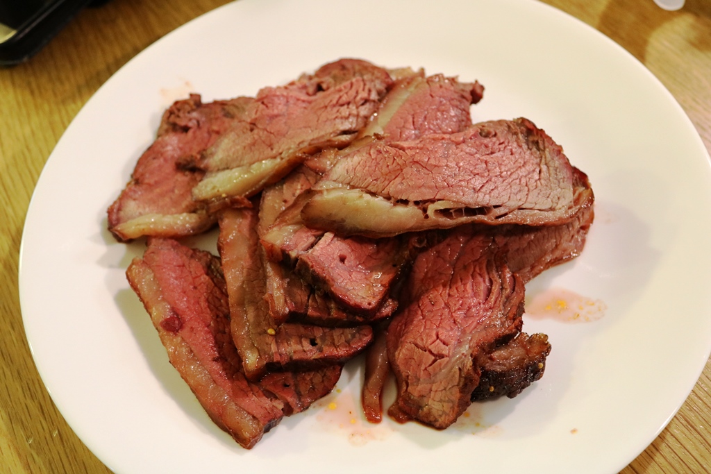 פרסתי נגד כיוון הסיבים כפי שחשוב לעשות בנתחים כאלה וטעמתי. פרסתי גם מהצד השני, טעמנו ואז טעמנו עוד. חוץ מהטעם העשיר שהיה עוד יותר טוב מהשפיצים הקודמים, הבשר גם היה רך!!!
