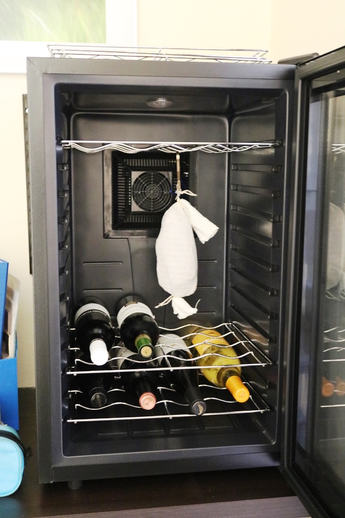 רציתי לשאול: המקרר הזה הוא מקרר יינות, נכון? לי יש בדיוק אחד כזה. צריך לעשות בו שינויים? ראיתי אנשים שמתקינים מערכת בקרת לחות עם מה שנקרא dehumidifier. מתקינים עוד מאורר.