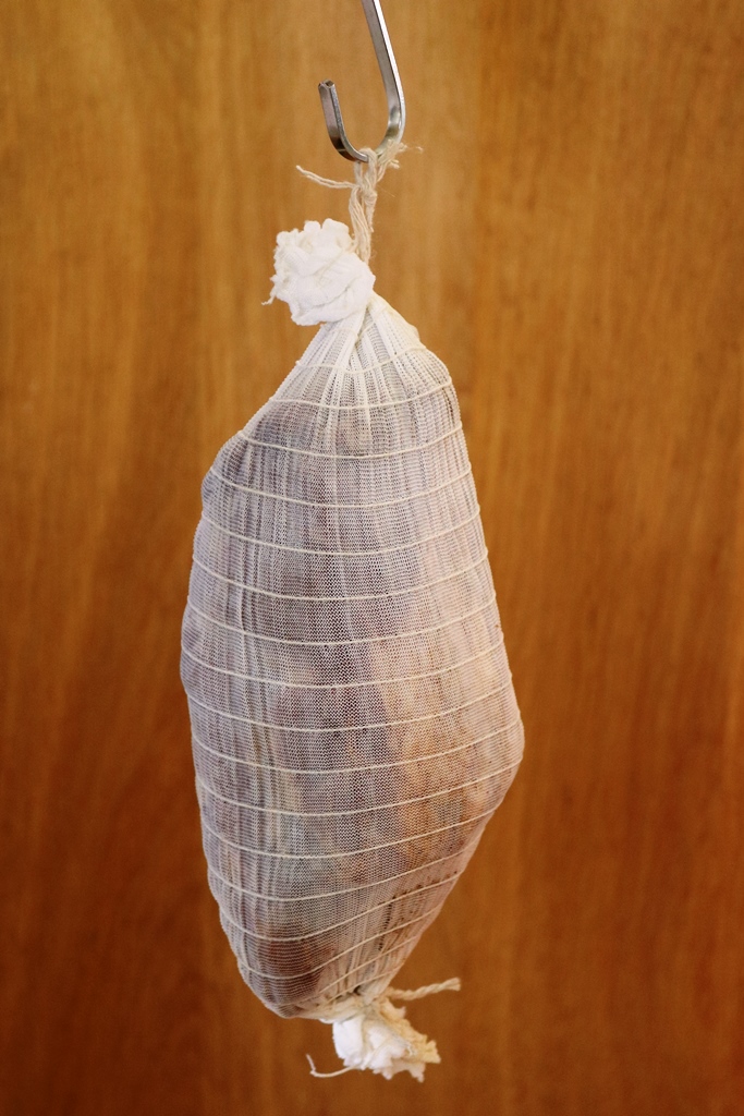 עוטפים בבד נושם או ברשת חוטים ותולים במקום קריר 12-15 מעלות עם אחוזי לחות גבוהים 75% למשך 6-8 שבועות