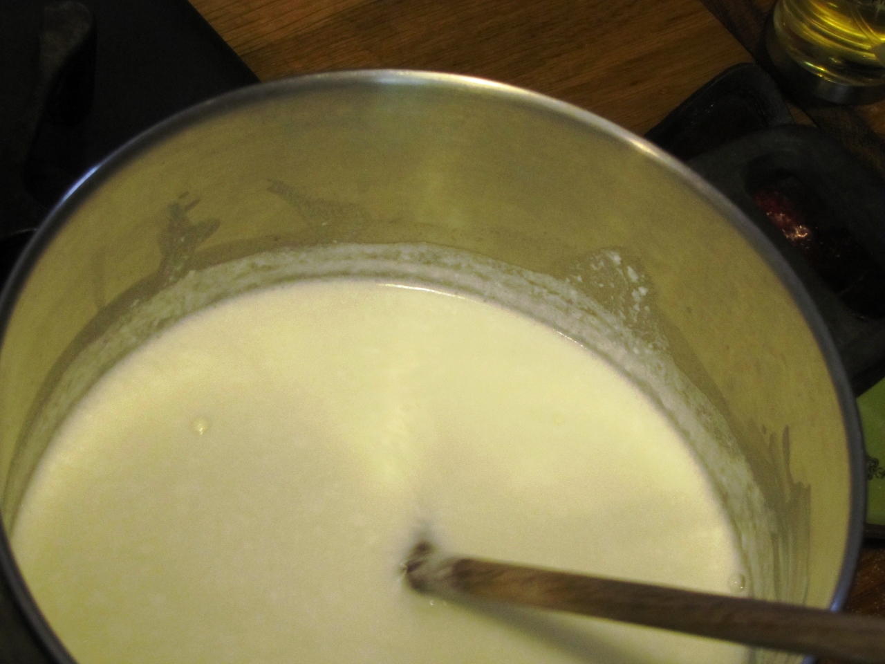 מבשלים את כל המרכיבים על אש גבוהה כ-20 דקות (או יותר), מערבבים מדי פעם, עד להופעת גושים בתערובת.