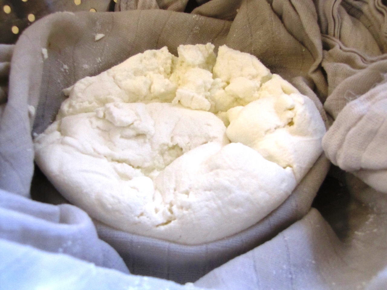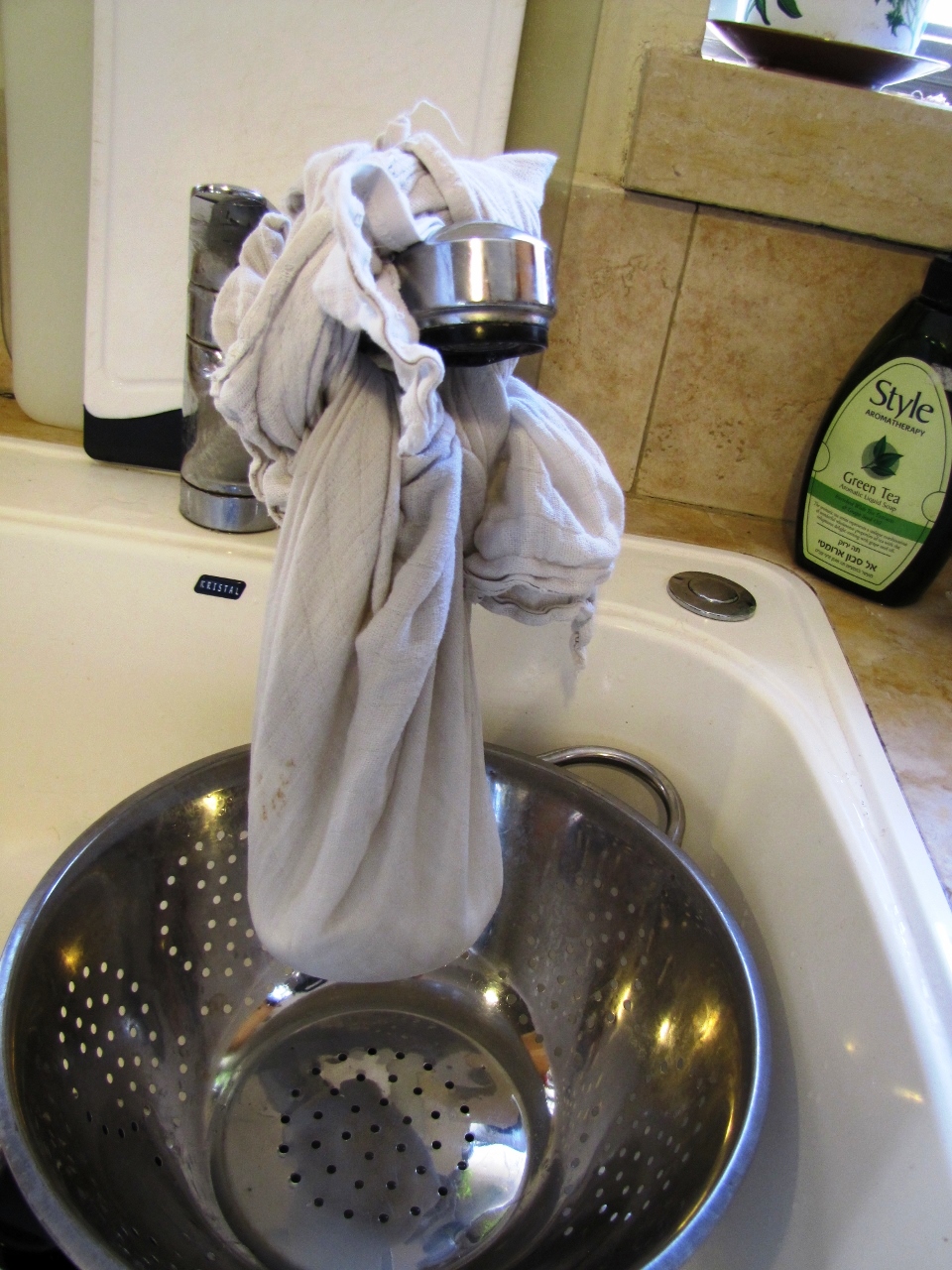 שופכים למסננת מרופדת בחיתול בד ומנקזים את הנוזלים כ-15 דקות.