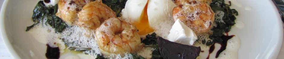 לעיקרית בחרתי בשרימפ פופאי – חסילונים צרובים על תרד תורכי, גבינת פטה וביצה עלומה ברוטב יין אדום וקציפת ליים-טימין. המלצרית הזהירה שזו מנה עם המון טעמים, אבל כל עוד הם לא כוללים חריף אין לי בעיה.