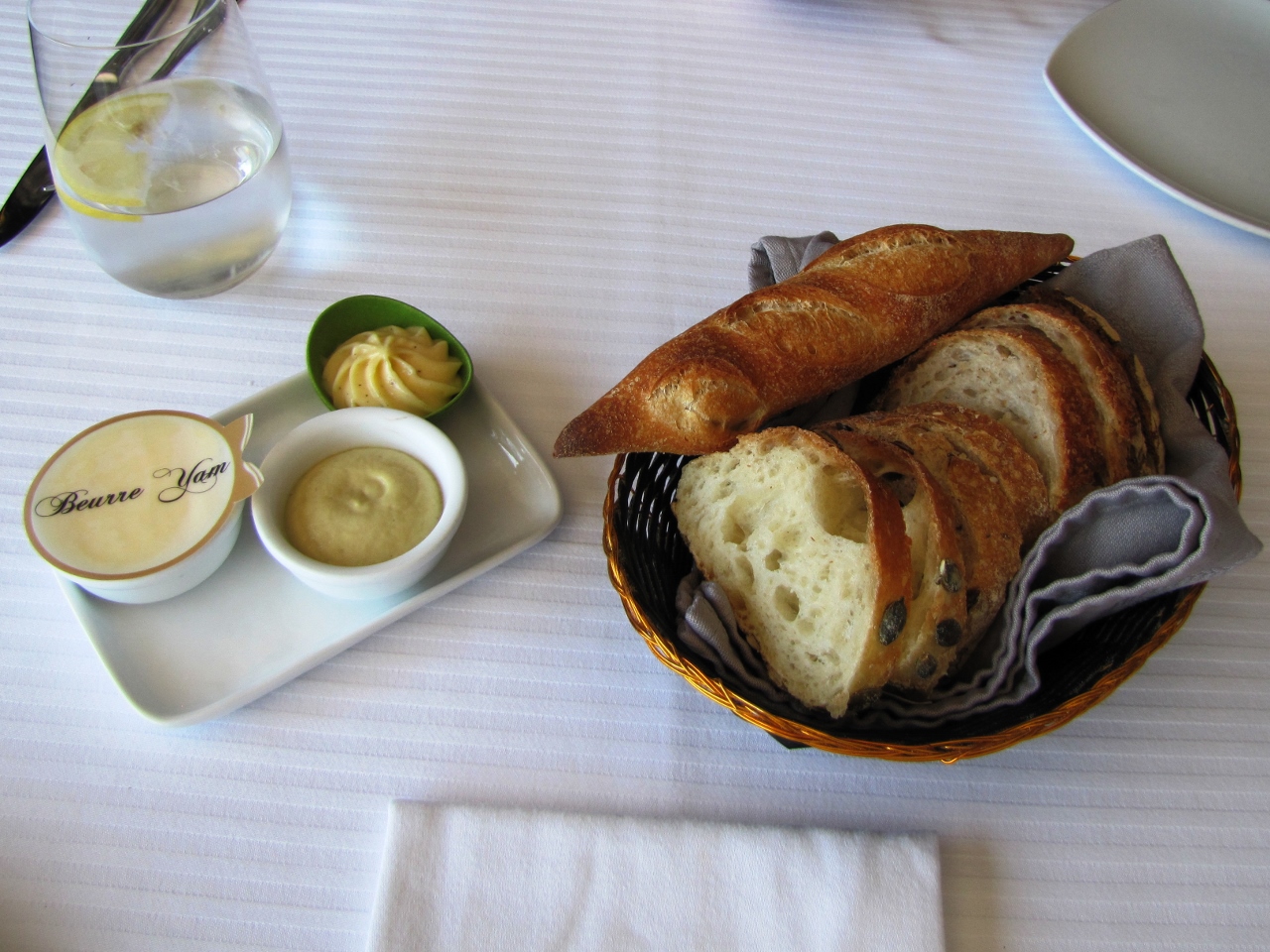 בדיוק כמו בפעם הקודמת לשולחן הגיעה סלסילת לחמים עם חמאה, איולי וקרם חצילים. הסלסילה והממרחים ילוו אותנו לכל אורך הארוחה וימולאו אוטומטית ברגע שיראו סימני ריקון, לרות שבשלב מסוים המלצרית רמזה שכדאי להשאיר מקום לקינוחים כי הם טובים.