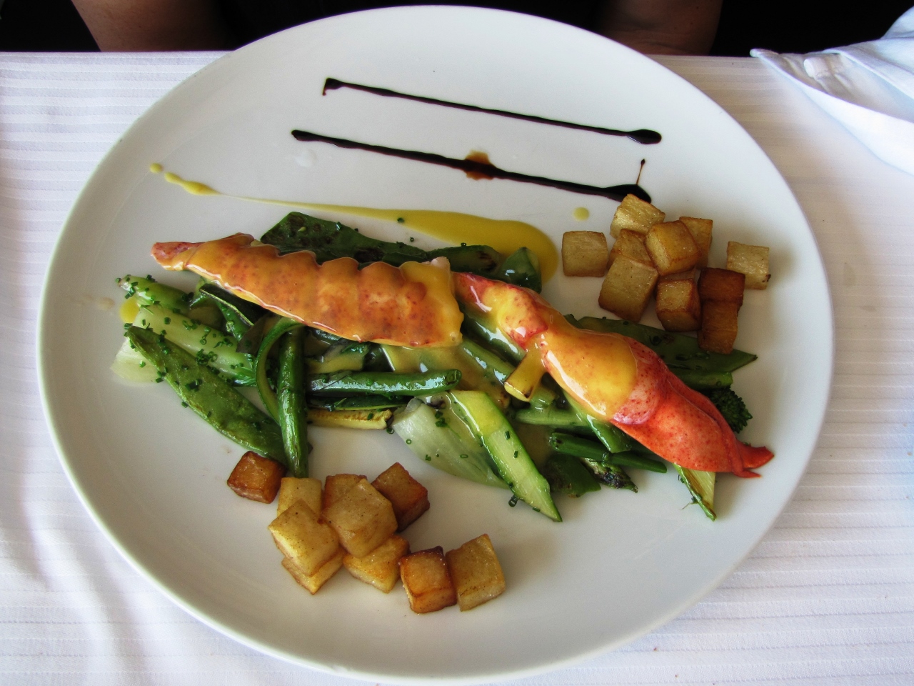 הילה בחרה בלובסטר מנדרין – חצי לובסטר מבושל סו-ויד על ירקות ירוקים בויניגריט מנדרינות ותפוחי אדמה ברוזמרין. מנה מוצלחת, יפה וטעימה.