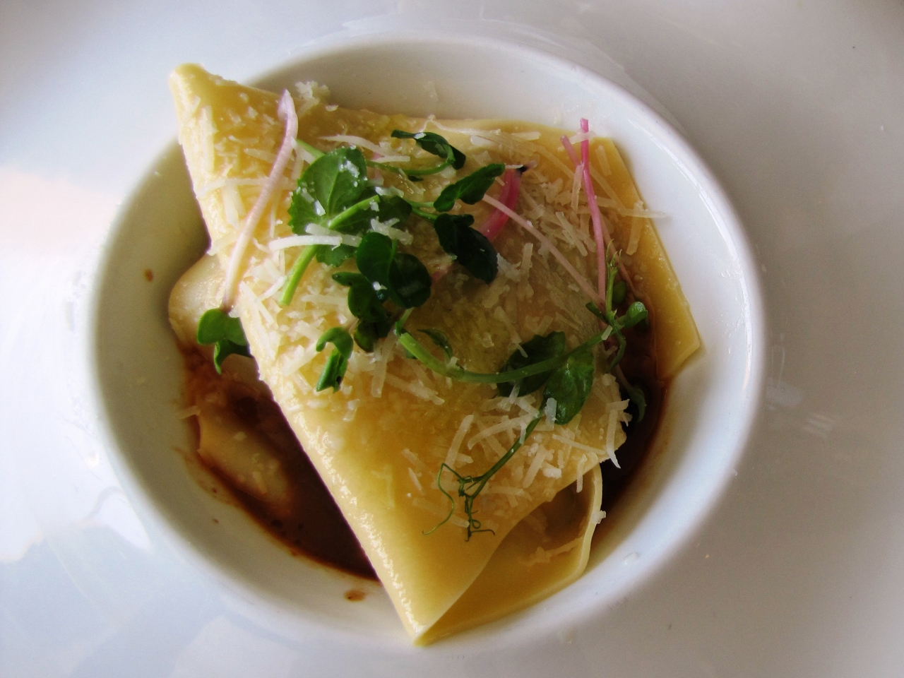 בחרתי בלזניה "משוגעת" – עלה פסטה עוטף בייבי שרימפ ובשר סרטנים כחולים בציר לובסטר מצומצם וחמאת מרווה. נשמע טוב ונראה לא רע אבל זה לא היה זה, עלה הפסטה דקיק וקשה ולכן החיתוך שלו והבאתו לפה היו משימה מפרכת, הטעם של ציר הלובסטר האפיל על הכל – חבל.