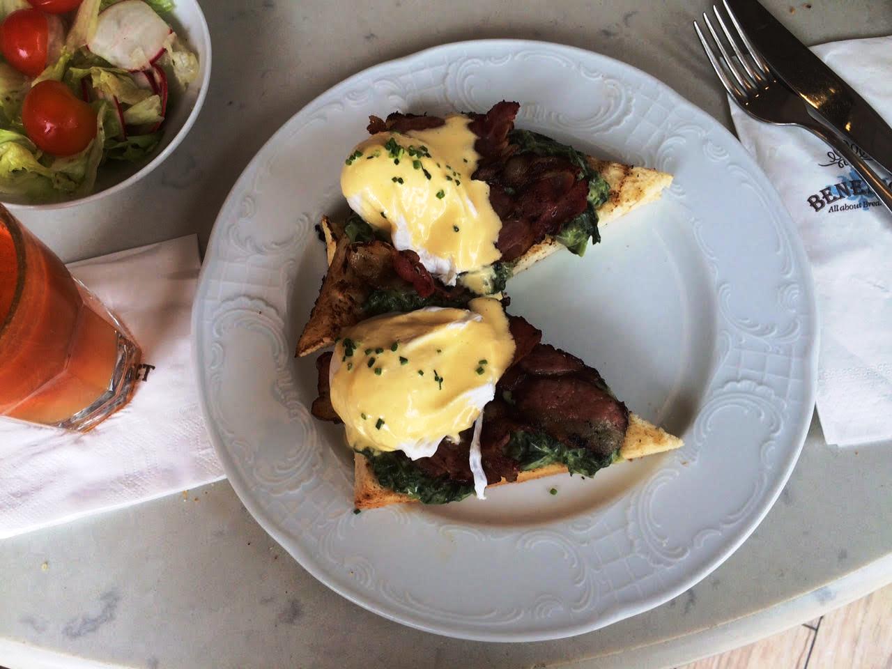 A short 10 min walk takes us to the Rothschild branch of Benedict where we had reserved a table for “breakfast”