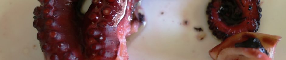 Remove the octopus from the bag and dry it. Cut it into portions – 2 legs per person, or 1 if it is large.